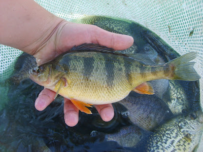 Also I think the smallmouths in his pond are reproducing too fast and they are all competing for what limited food is available. Our plan is to tag and relocate all of the skinny smallmouths regardless of their lengths to make room and more available food for the big mommas! We are also going to be adding more appropriately sized forage for the smallies to eat. Golden Shiners and Yellow Perch are longer and more slender than bluegills, and are much easier for them to eat! We have some Jumbo Perch Broodstock coming in just a couple weeks!