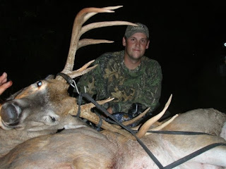 My friend Jacob Heimer over near Taylor, Missouri shot Cutter on opening day of the 2009 archery season. They have been watching this deer since 2007, passed on him in 2008, and took him down in 2009! Cutter's rack green scored 170 inches.