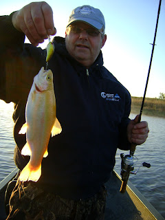 Lee put on a fishing clinic! His bait of choice was a white/chartruese Bomber A crankbait, slow retrieved from the bank back to the boat.