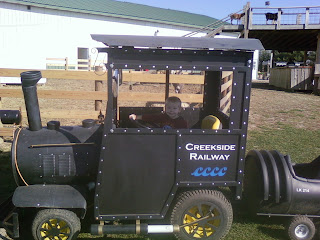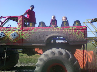 Anyhow, friday evening I got home and spent the next 51 hours just playing with my kids, and it was great! We picked corn for the geese, rode in a boat across the pond, walked to the apple orchard, fed the goats, went down a big slide 100 times, rode a hayrack ride, took a ride in a monster truck, rode Justin's 4-wheeler for a couple hours, and each had about 5 bags of cotton candy throughout the day. Here is noah stuffing it in as fast as possible!