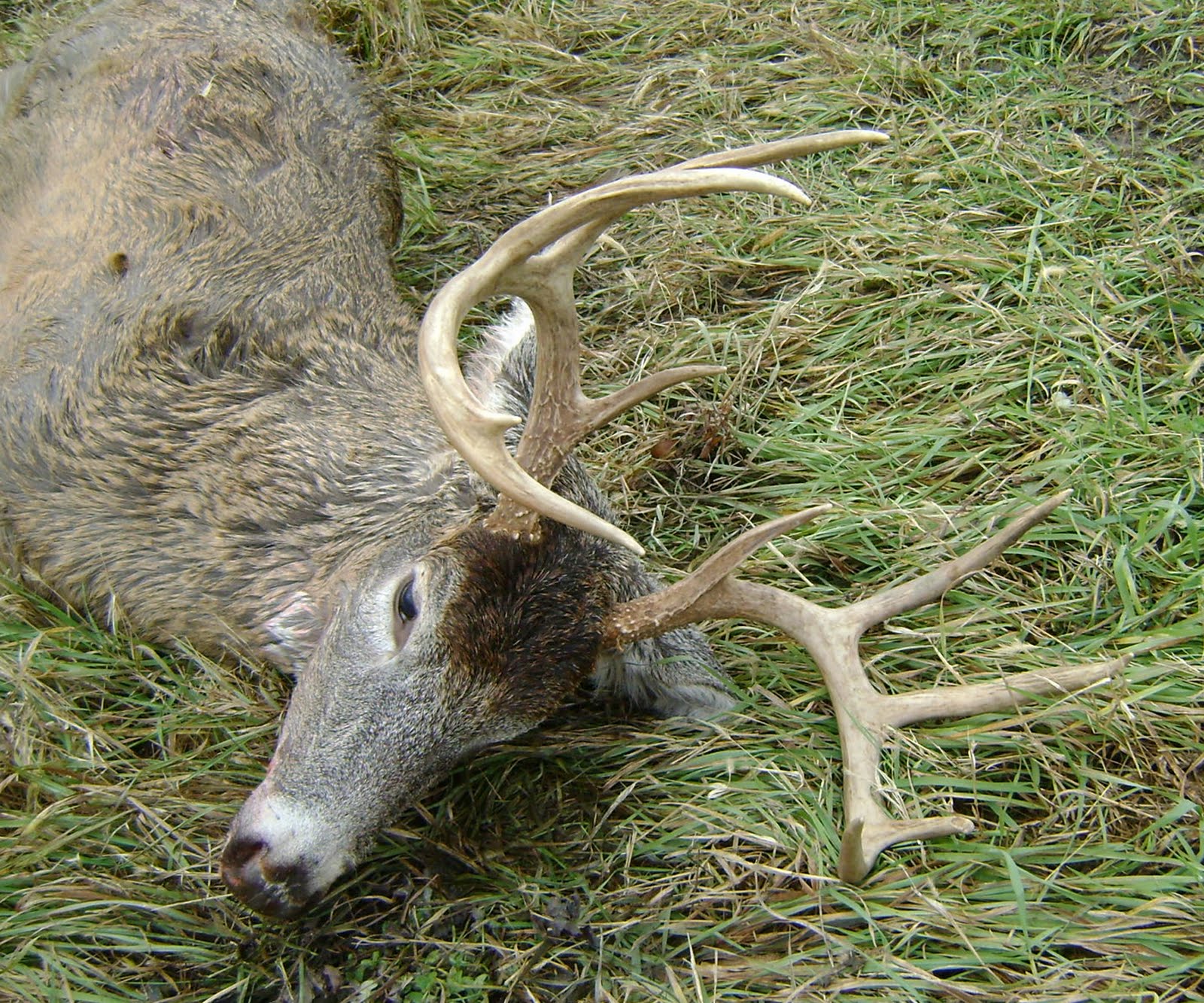 The moment he turned his head, I lifted my H and R slug gun, placed the crosshairs on his heart and without hesitating fired the slug! The buck spun around 180 degrees and ran full speed about 25 yards directly head first into a very small pond. His head went completely underwater and his back legs kicked furiously for about 30 seconds before he finally drown.