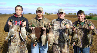 Hunting buddies Todd, Aaron and Matt along with my brothers and my two cousins- Caleb and David (both first time hunters) and I all met at 6 am and set up a nice spread of 3 dozen big feet decoys and 2 mojo ducks out in the field. I knew the geese didnt start flying till about 8:30 am so we brought the mojo's to try and get lucky with a group of early flying ducks. What happened next was really pretty unbelievable.