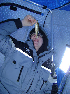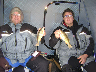 Dad and Justin started catching a few perch in their second spot. They did a great job at catching the little fellas, while we were after their mommas!