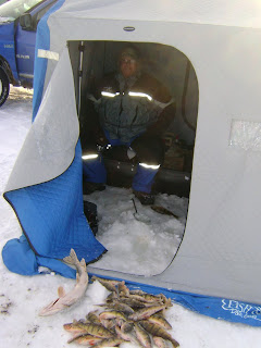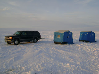 We did most of our fishing out of these thermal portable 2 man Clams. They fold up real nice, have swivel seats, are very roomy, and warm up to about 60 degrees in 5 minutes!