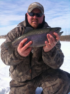 Drake is like enough already, I am ready to get out of here. In the mean time, while I have been hanging out in the hospital with Brook and Drake Dawg, Justin has been taking care of all of our office work, online shipments and scheduled guided fishing trips. Fish haven't been jumping out of the hole left and right like usual, but they have caught some real nice fish! Here are some pics all jumbled together from Thurs, Fri, Sat, and Monday's trips: