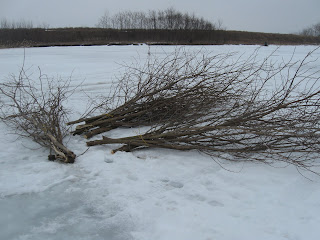If I would have been going ice fishing today I would have been able to find about a dozen or more people to come on out to the lake, but since I was cutting and dragging trees I could only scrounge up my dad. We are pretty used to that scenario, but we dont actually mind all the background work. Creating the best fishing lake in Illinois is my goal, so in order to get that accomplished I need to spend a few days on the ice working and not fishing.