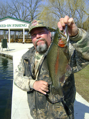 Monday morning I filmed a trout fly fishing show with Jon Graham, Curt Eber, Chef Todd, Casey Carey, and Justin down at the Hooked On Fishing Park. I have been raising rainbow trout in one of the springs for the last 3 years and have hundreds of 3-5 lb rainbows! They really are amazing fish and the fishing park is the perfect place for fly fishing for them! I am using the trophy trout springs to raise funds to help sponsor the free kids fishing instructions we provide all summer long, so if you know anyone who would like some flyfishing lessons or just needing to scratch the itch a bit closer to home you can give me a call or visit http://hbpondmanagement.com/exclusivetrout.htm
