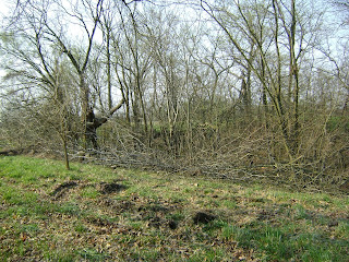 The entire property is divided into sections on a map. There is a written management plan for each section. We have until the second week of May to get as many sections done as possible. Once the does start having fawns, all the work on the property is done for the year. Having the fawns born and raised on the property without any human distractions is pretty important to keeping that deer on your property forever. Justin and some of our part time help have been performing the selective tree cutting and hinging, brush pile making, and various other labor for the last week. They finished 5 sections and hope to get a couple more done by the cutoff date.