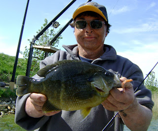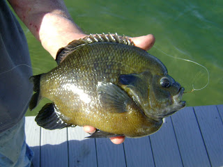 Rex not only broke his personal record once, but he managed to break it 3 times in our 45 minute fishing trip. The biggest was this 30 ounce monster bluegill: