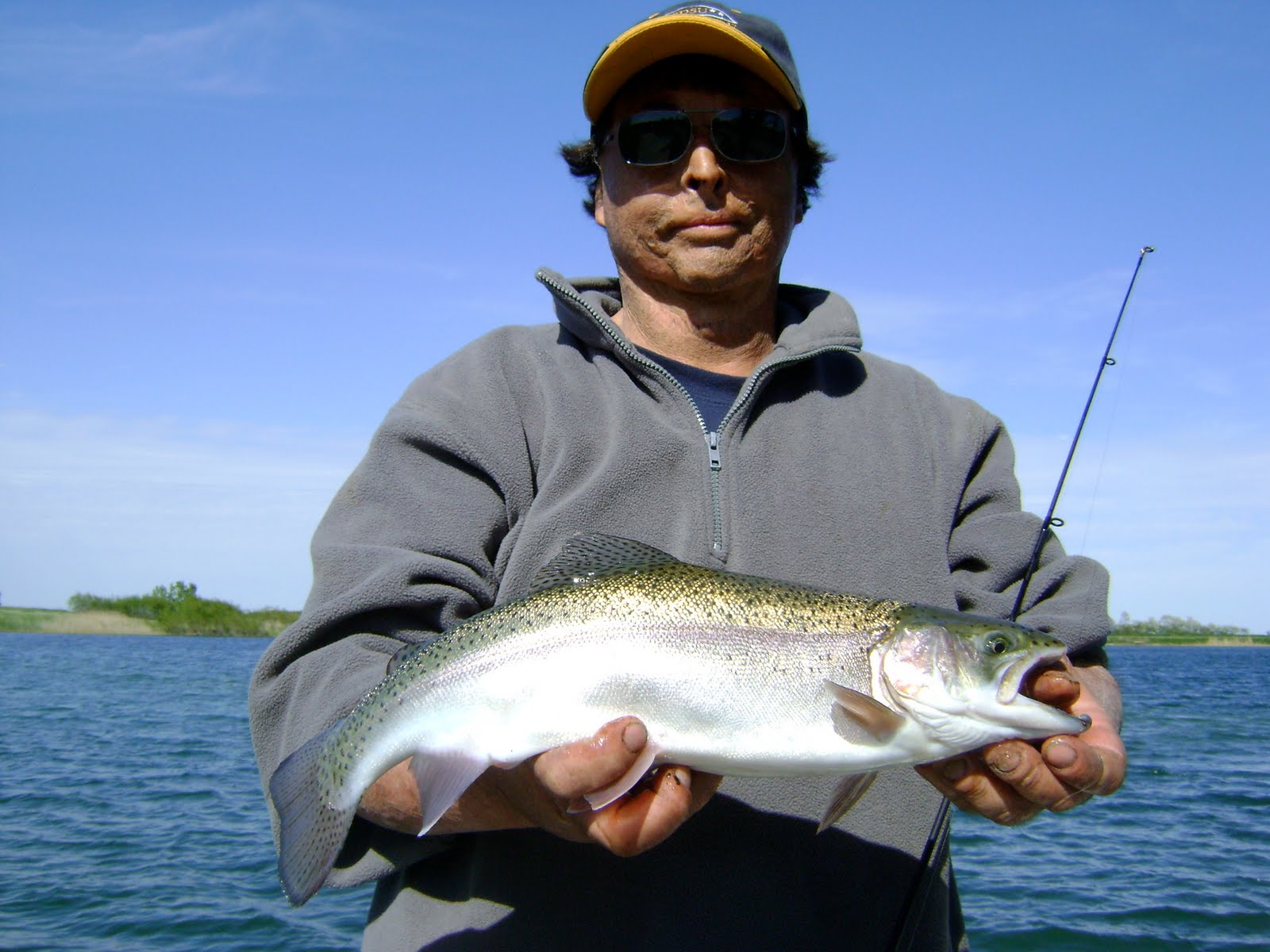 I have this 33 acre lake in central Illinois completely full of huge bluegill and all sorts of bonus fish. You just never know what your going to catch on any given cast. Rex was surprised when this feisty rainbow trout grabbed his bait: