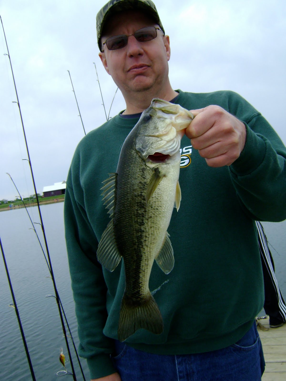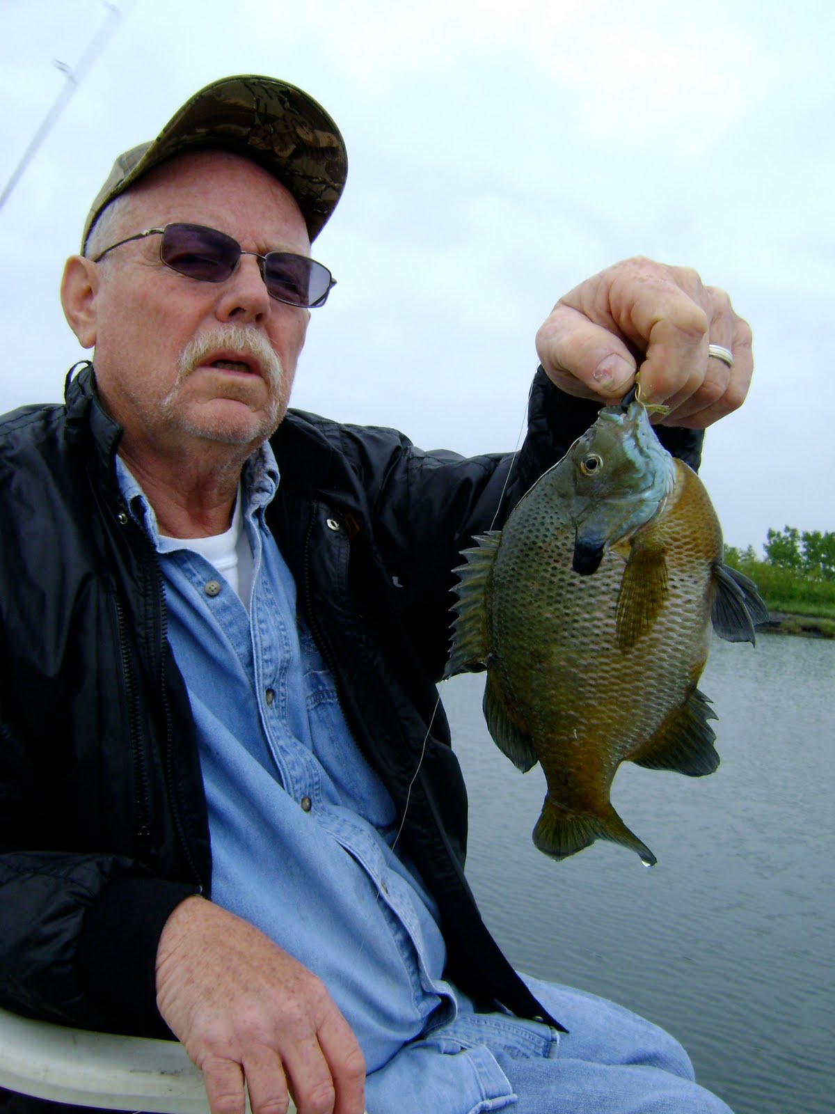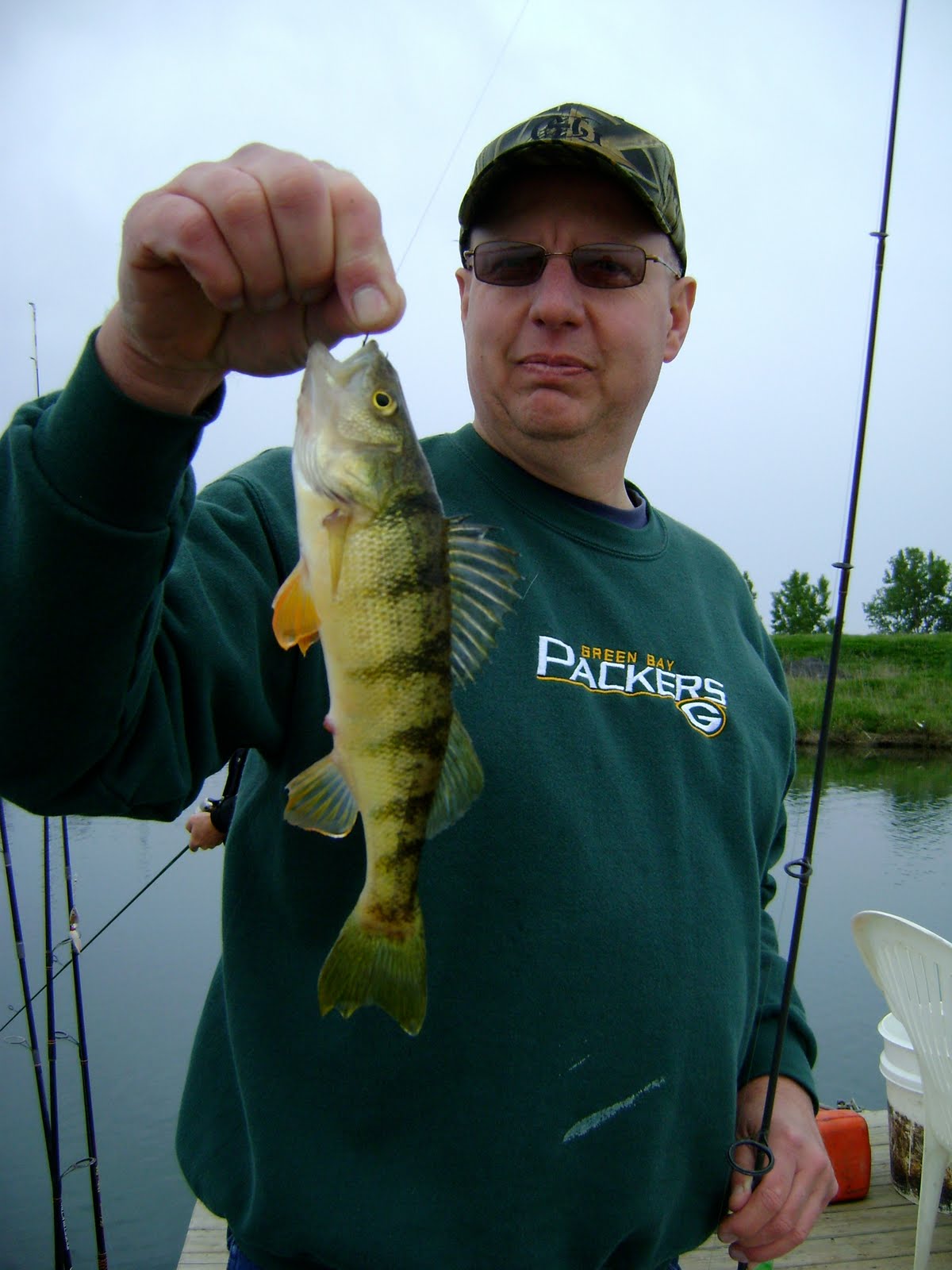 Saturday at 8 am I met up with Jeff, Chuck, and Ron. They donated a bunch of money to the Children's Advocacy fundraising auction and in return we took them out on a guided fishing trip. They really wanted to catch some crappies, but instead the only thing we could catch was some bluegill, trout, smallmouth, largemouth, yellow perch, and a whole bunch of walleye. We still had a lot of fun and caught a ton of fish, but was disappointed in not being able to get them boys some crappies??? Hey, take notice that only 2 of the 3 fishing in the group are in the following photos and also take note that the majority of the photos are of Ron. Ron came into this trip with absolutely no fishing experience or equipment. He just simply learned how to use the fishing rod, listened to all of my instruction and just did exactly what he was told to do.