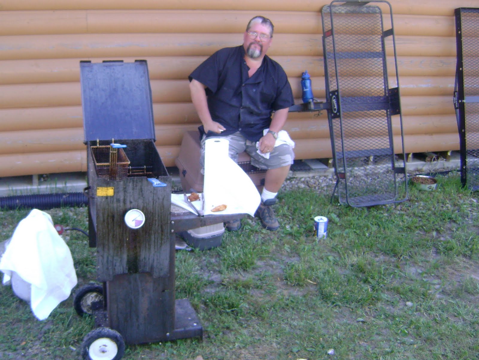 There was another boat of 3 high school boys who ended the tournament with 6 fish and one other boat of 4 people who were kind of on pace to contend for the title, but got called in an hour early to take care of some stuff. Altogether we cleaned 90 crappies, 40 bluegill, and 3 catfish for our fish fry. Chef whipped up a big batch of his special cole slaw, french fries, some breads, and of course all the fish. Another fella also fried up some chicken legs and some other people made some other stuff to compliment the feast.