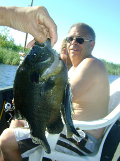 Saturday morning I was up at 4:45 am and headed out onto the water for an early morning fishing trip at 5 am. We fished shallow water this time hoping to catch some fish still up along the banks before the arrival of the hot sun. We caught some really nice big bluegill and a few bass up close before moving back out deep for the cool water species.