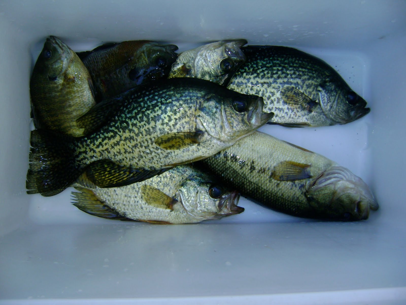 Todd and his crew fished pink bodied road runners that he called funky chicken or something obscure like that. They did alot of casting and some trolling and caught 40 really nice crappies and 15 bluegill!