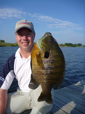 On Saturday I had the privilege of fishing with professional fisherman Steve Ryan and Dale Rothstein. They have been fishing in exotic places around the world filming and photographing fish for people like In-Fisherman, Rapala, Frabill, Pflueger, etc. It was kind of awesome that guys I have been watching on TV fishing the best waters in the world actually came to Central Illinois to fish with me! The air was already hot at 8 am, there weren't many clouds in the sky and the water was a blistering 86 degrees. Here was my chance to show the world some of the cutting edge fish projects we have been creating and we had to pick the dog days of summer to do so. I was a little nervous at first, but as the fish kept biting and the cameras kept clicking I was able to settle down, relax and enjoy the day.