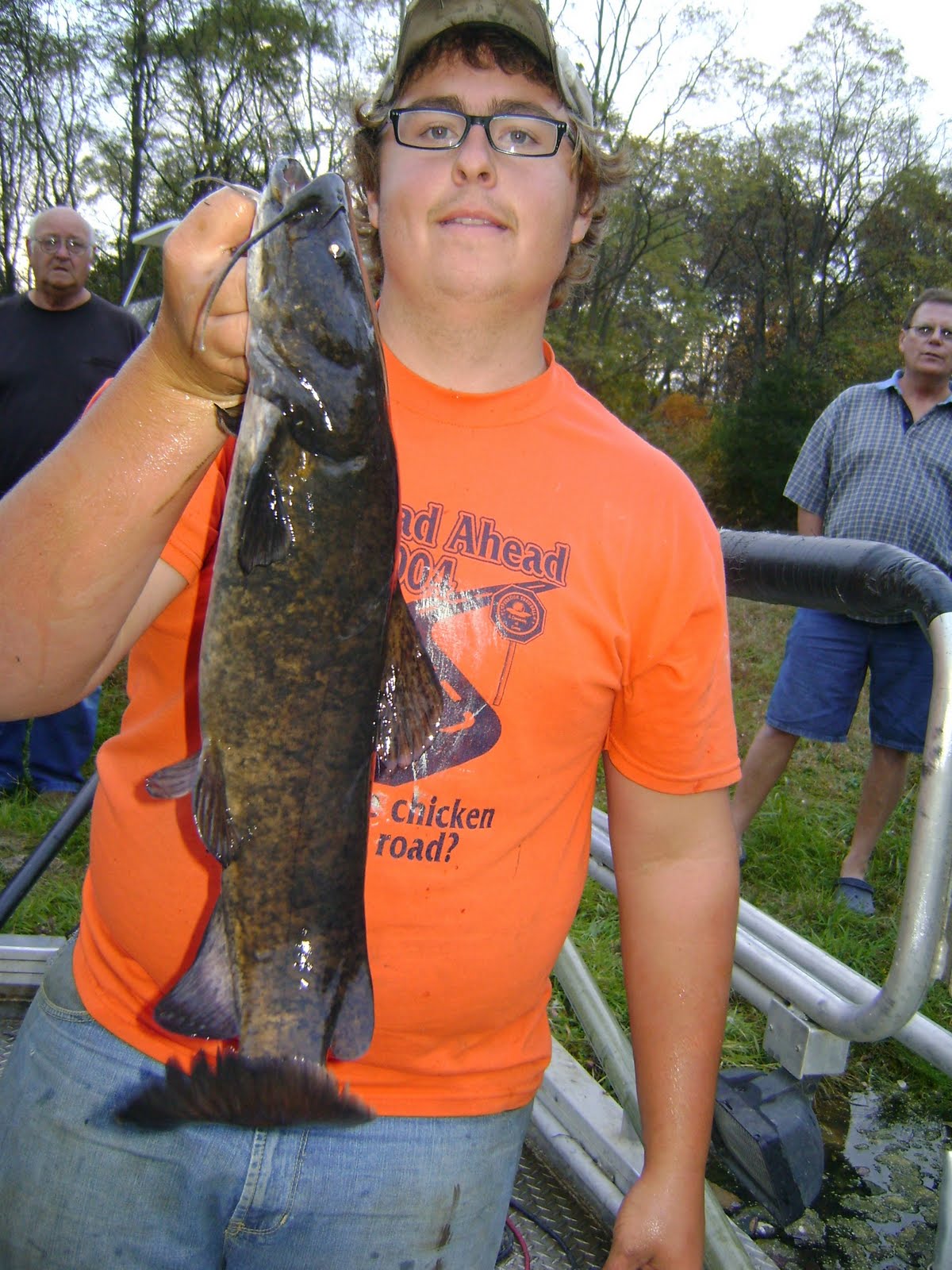 This week while electrofishing a 6 acre lake near Dunlap, Illinois for the Radnor Rod and Camping Club we came across this big flathead catfish: