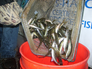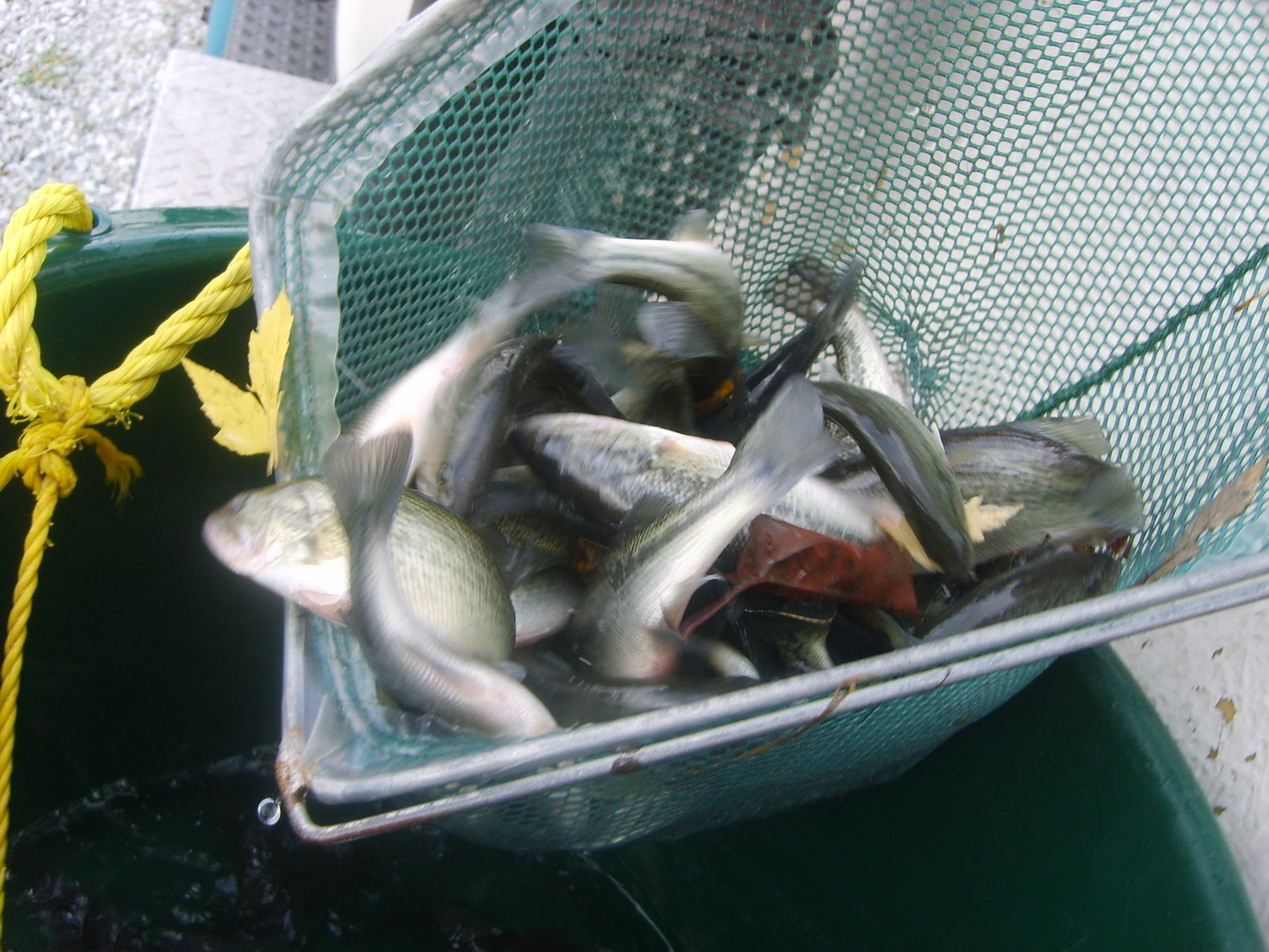 Thursday started well before the sun. Our first stop was to Benningfields lakes where we stocked some rainbow trout, channel catfish, grass carp, and albino catfish. Next stop was to Hidden Lakes Farms where we stocked a whole bunch of rainbow trout in the trout lake, golden shiners in the smallmouth lake, feed trained bass in the trophy lake, and hybrid stripers into the striper lake. Next Justin went to Sherman and Bryant property with a whole tank full of fathead minnows and golden shiners to get their new pond started right while I went to Ted Rigginbach's and Edwin Petersons to stock some big rainbow trout. I put some 4, 5, and even an 8 lb rainbow trout into Edwins small pond for our big ice fishing extravaganza this winter! (if your his friend, hopefully you get invited!!!) Then I met back up with Justin at Doug Oberhelmans trout lake and loaded him up with a tank load of trout for Cullinans trout lake while I stocked Doug's. From their we went to Norris to supplement a few trout and from there Justin went to Gary Glovers lake to stock a whole bunch of hybrid striped bass, albino catfish, channel catfish and rainbow trout. I headed off to White Oak Lake in Germantown Hills to stock hundreds of lbs of golden shiners. I expect great things from that lake in the near future! By about 7 pm I was home and been working on paperwork pretty much ever since.