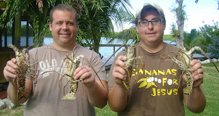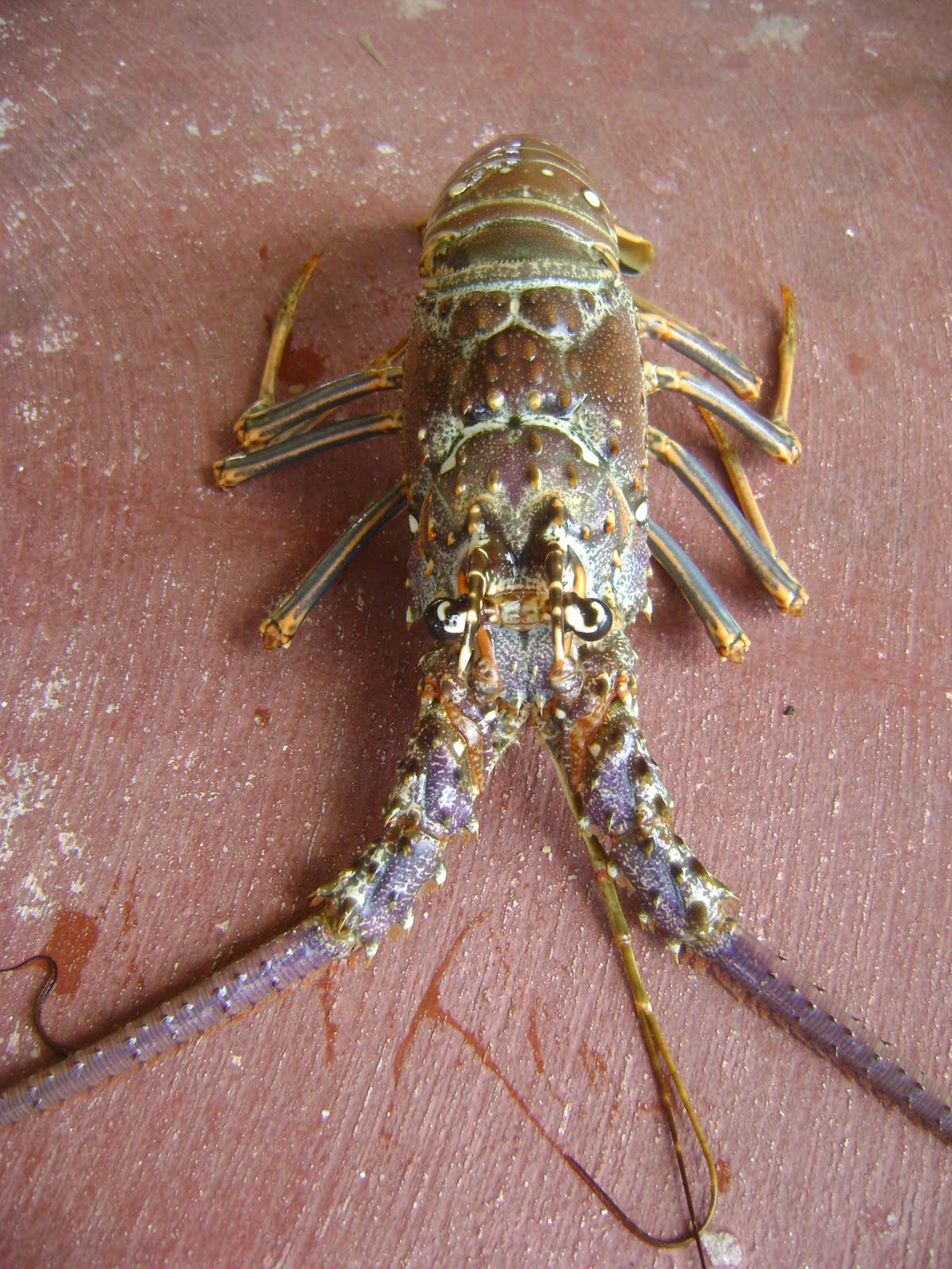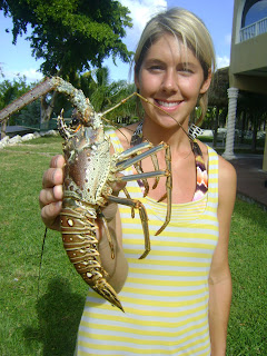 Today we went snorkeling for Lobsters. I actually stayed back on the shore to play with the kids on the beach while Amy, Jared, Justin, Chad and Mom went out onto the rocky zones to pluck lobsters out of their holes. They had some good stories about barracudas and a big nurse shark along with a bit of lobster plucking! These kind of lobsters dont have any pinchers, but they have many razor sharp edges.