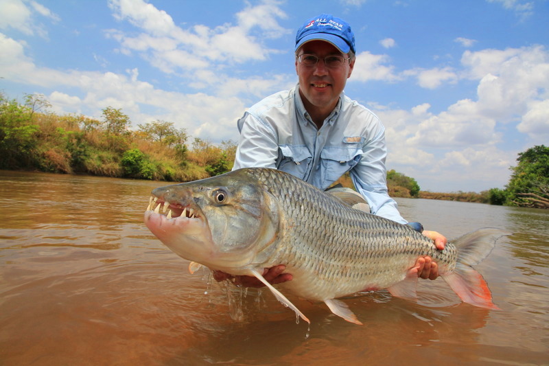 Steve just stuck to fishing while in Africa and caught some real nice fish too. Here is one Tiger fish that I am truly envious of: