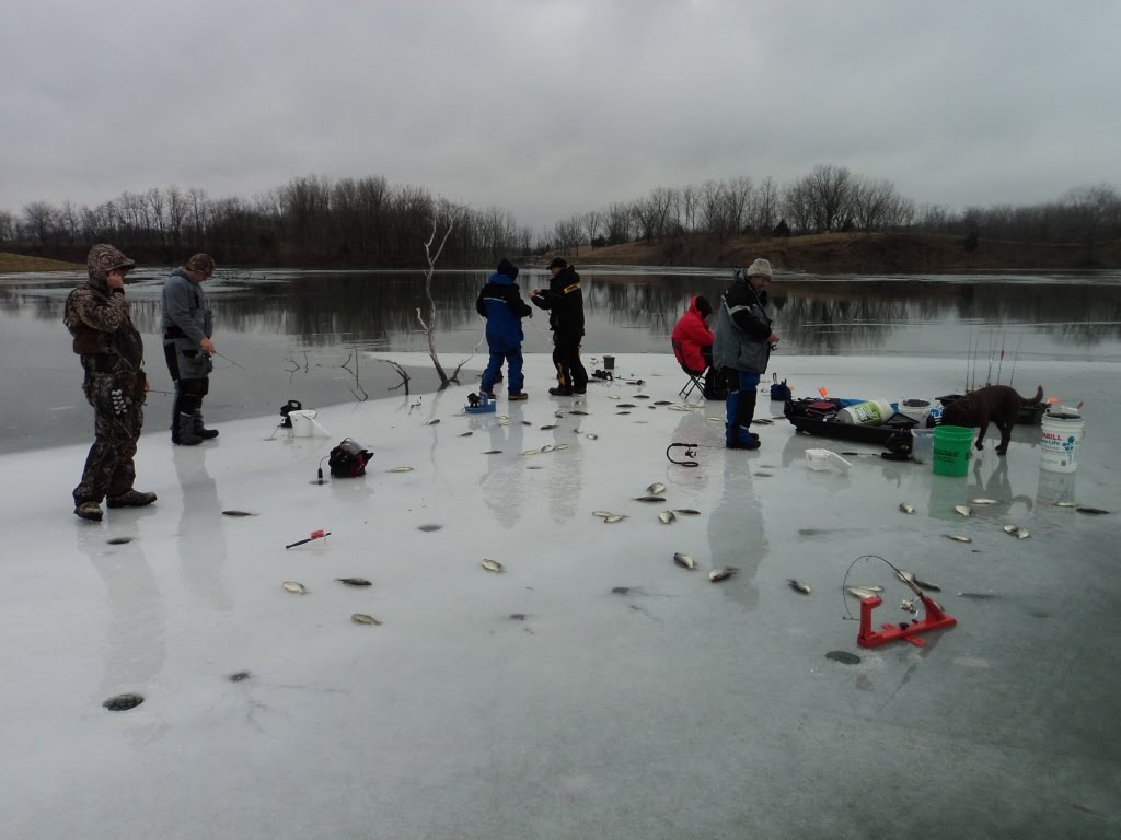 We were ice fishing at Otter Creek Preserve. Overall we had the best day of ice fishing any of us have ever experienced, and collectively our group has over 150 years of ICE FISHING EXPERIENCE under our belts. For this trip, we were joined by professional fisherman Steve Ryan, Dave something (sorry Dave), fishing guide Steve Everetts, Ryan Pudik, Justin, and my Dad. Otter Creek lakes have never really been ice fished before, so I brought in the professionals to see what lurked in the frigid waters below.