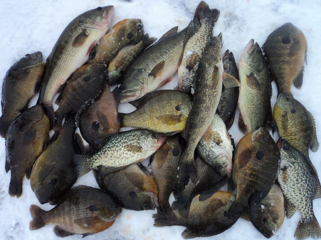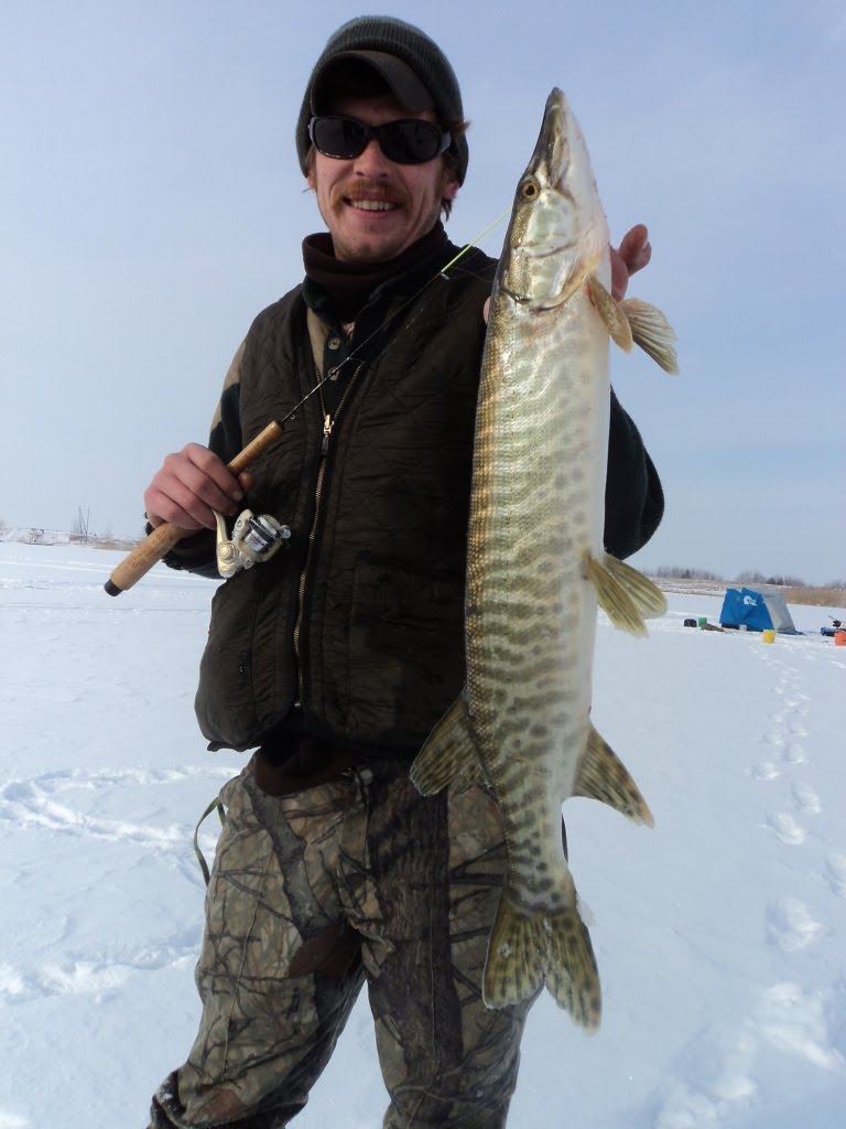 We fished there at that spot till 2 pm and then went down to fish the 53 acre canadian lake for some yellow perch and walleye, but the ice wasn't safe down on that lake. The warm weather and rain really zapped the strength out of the ice. We packed up and headed for my place in Norris to finish the evening, clean fish, and just hang out for the night. Altogether we had a day of ice fishing that we will not soon forget! Actually we had so much fun and so many stories and photos we will never forget that day.