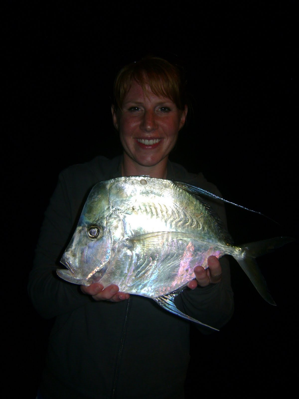 We missed some huge fish tonight as well. Justin fought a 50 lb cobia all the way up to the boat before it broke his line. Amy got spooled on our big rod while using a huge pinfish for bait. I tried wrestling a monster goliath grouper out of the wreck, but he was just a bit stronger than I was. Anyone of those fish we missed would have been once in a lifetime fish had we landed them.