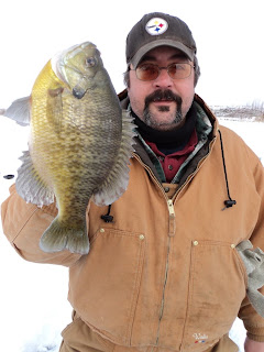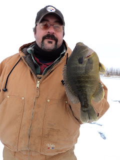 Anyhow we had a great time, drilled alot of holes and just enjoyed being outside on a beautiful winter day. When the wind isn't blowing, and the sun is shining, and there is snow on the ground it is just really nice to be outside. Oh yeah, we also caught some amazing fish and you don't want to miss these pictures!