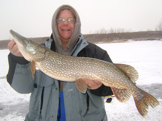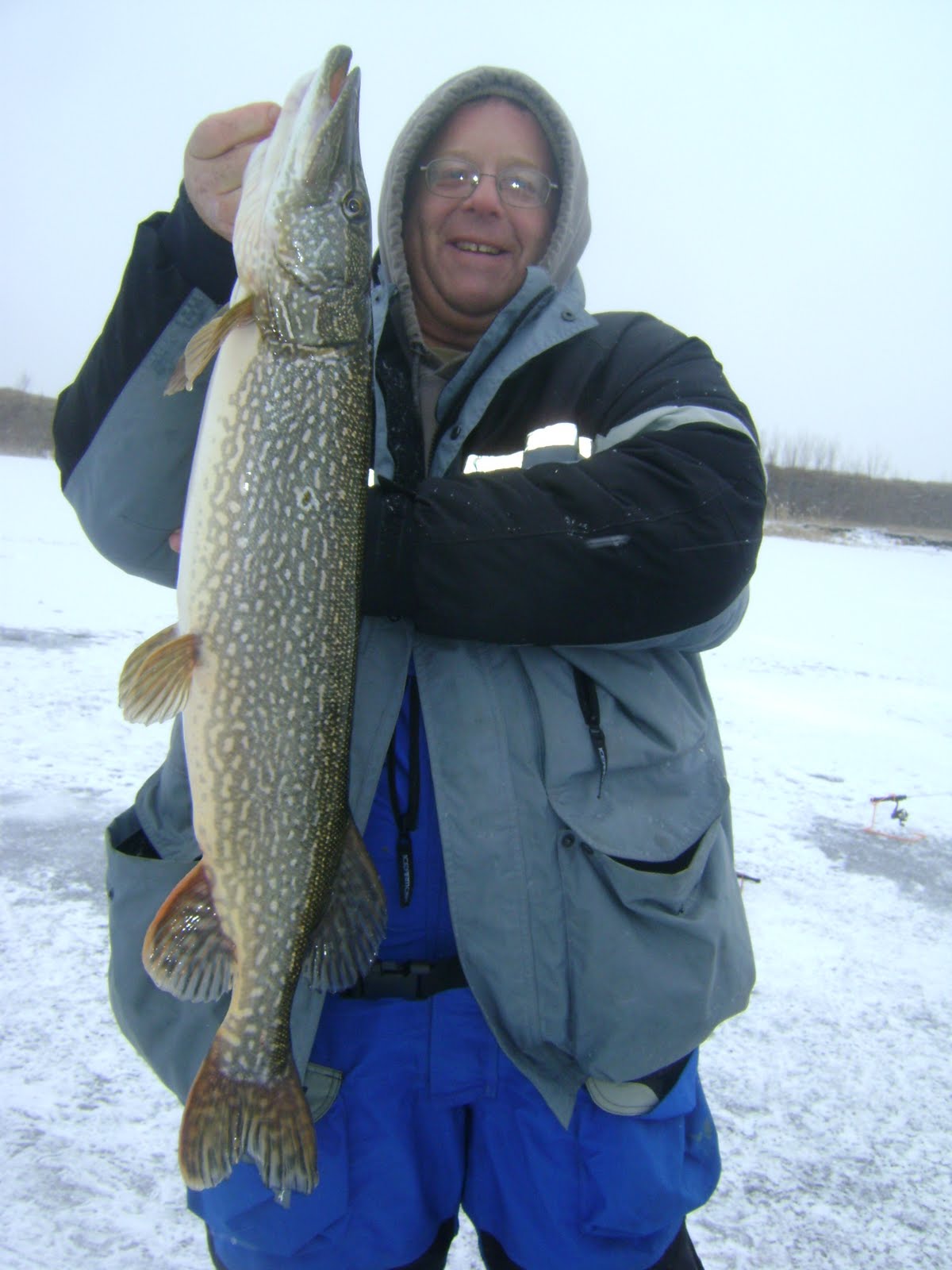 Once we landed it, we knew instantly that this fish was going on the wall of my dad's future house out at the lake. We wrapped her in a wet towel, than plastic wrap, than a garbage sack, and burried her in the snow. Then on our way back into town we put her in the deep freezer and will take her to the taxidermist next week.