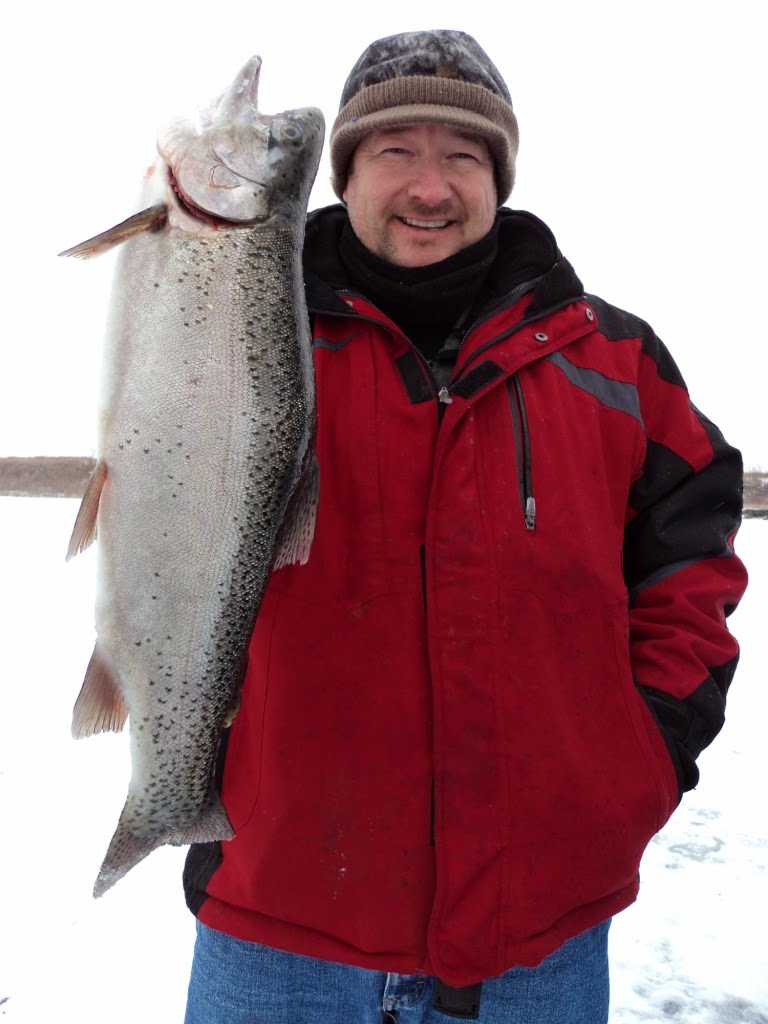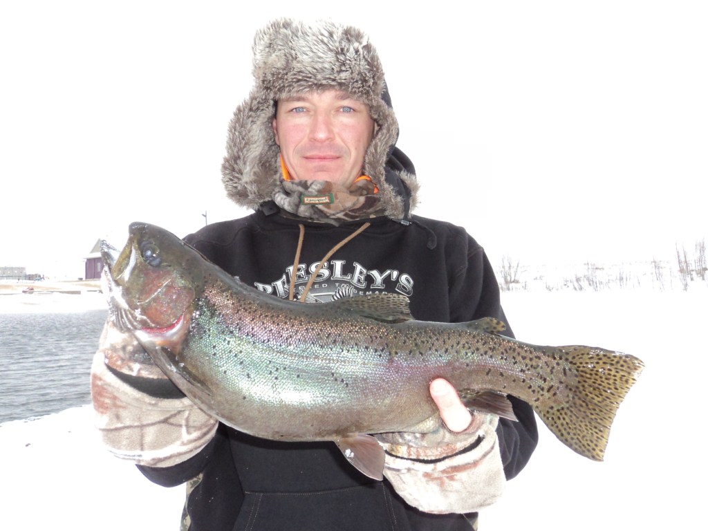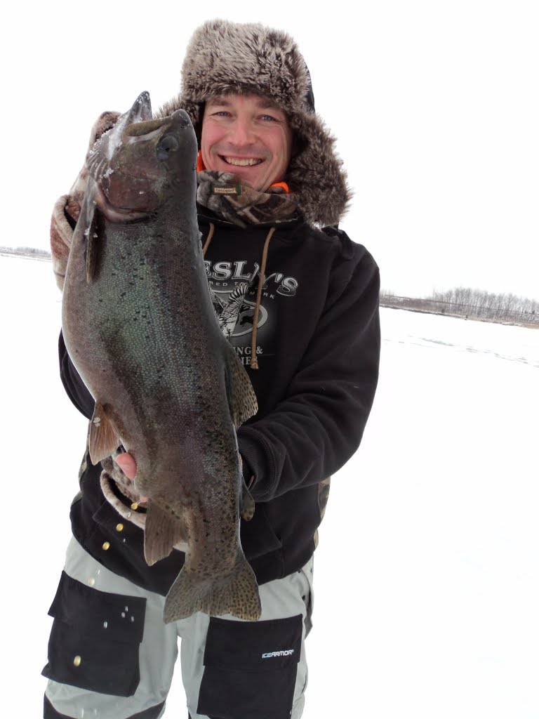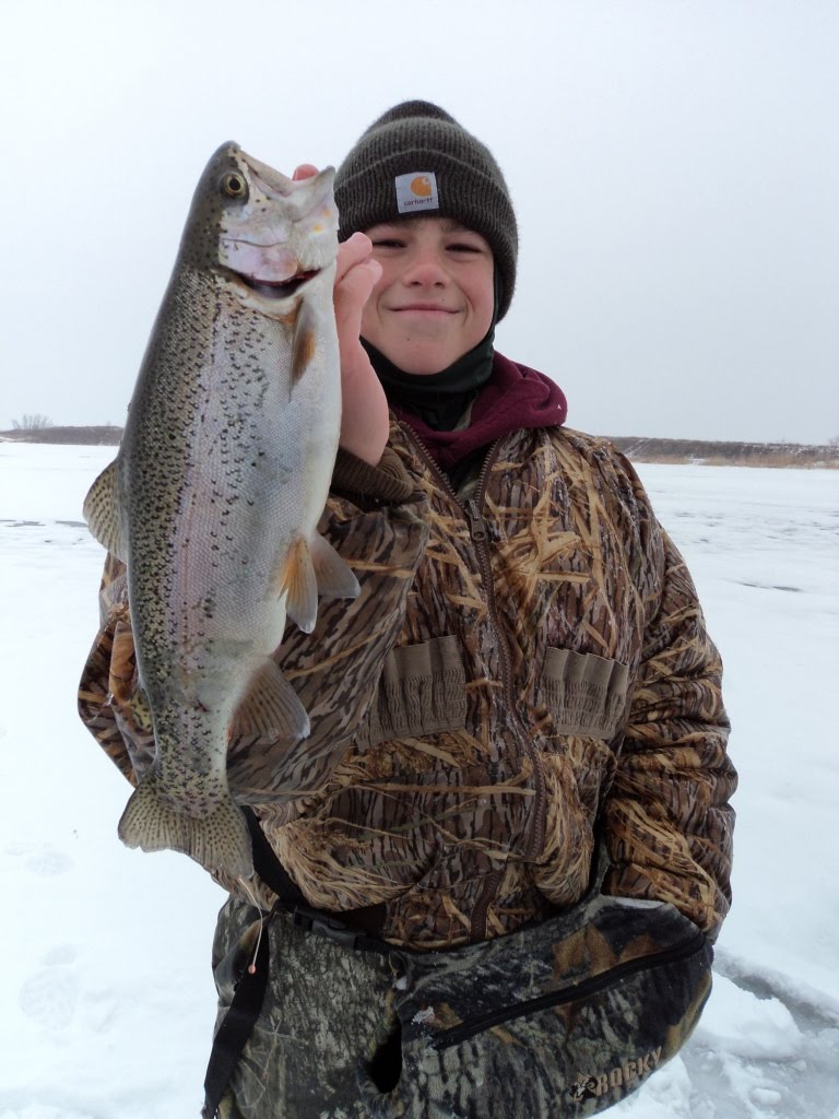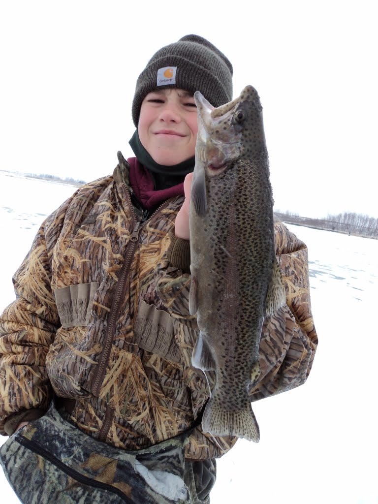 Mission accomplished with the trout too. Here is one really nice first trout to catch through the ice eh?