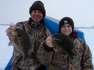 We accomplished our mission by catching 8 bluegills over 10 inches for the taxidermist and some of them were pushing 12 inches long! We didn't catch very many fish, but we caught some really big fish.