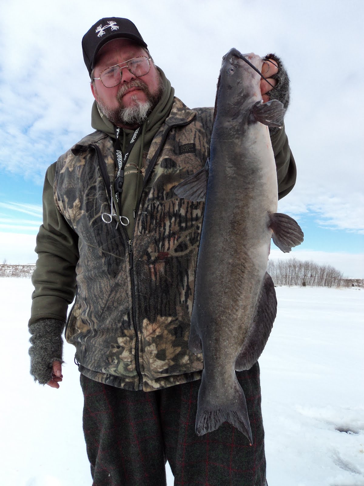 Chef also hooked into this big catfish and we all enjoyed helping get him in. Wasn't an easy task to fit it through a 6 inch hole with 14 inches of ice! I had to take off my coat and roll up my sleeves to reach all the way down to grab the fish.