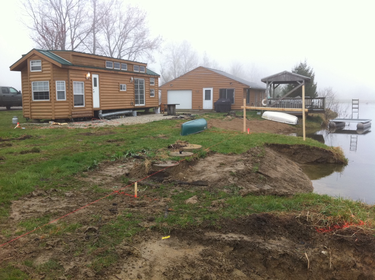 The deck is going to be cantilevered over the water quite a bit, so we dug out a bunch of dirt to help with some depth at the end of the deck to accomodate fluctuating water levels and of course fishing!