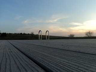 It was a 12x16 floating dock with a 6x16 gangway with flip up boat cleats, a nice swim ladder, composite decking, and mounted to 6x6 posts anchored 3 feet into the ground. Our crew is becoming dock building machines, oh yeah also of note is that it was 96 stinkin hot degrees on Monday!!! Thats sure a wake up call workin in the HEAT!