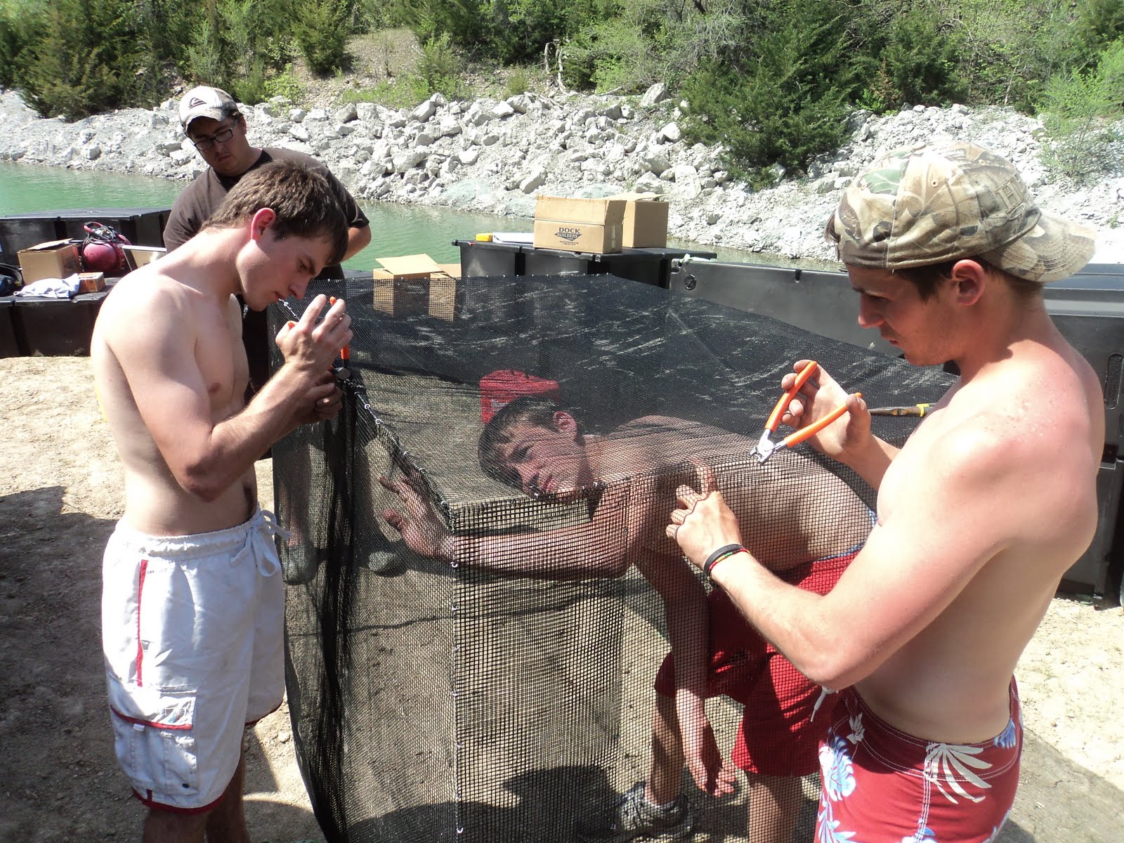Good thing we were working on a pond. The water was a chilly 62 degrees, but man did it feel nice to cool down every hour. This pond was about an acre and was stocked full of smallmouth bass, hybrid striped bass, jumbo yellow perch, golden shiners, and condello strain bluegills!