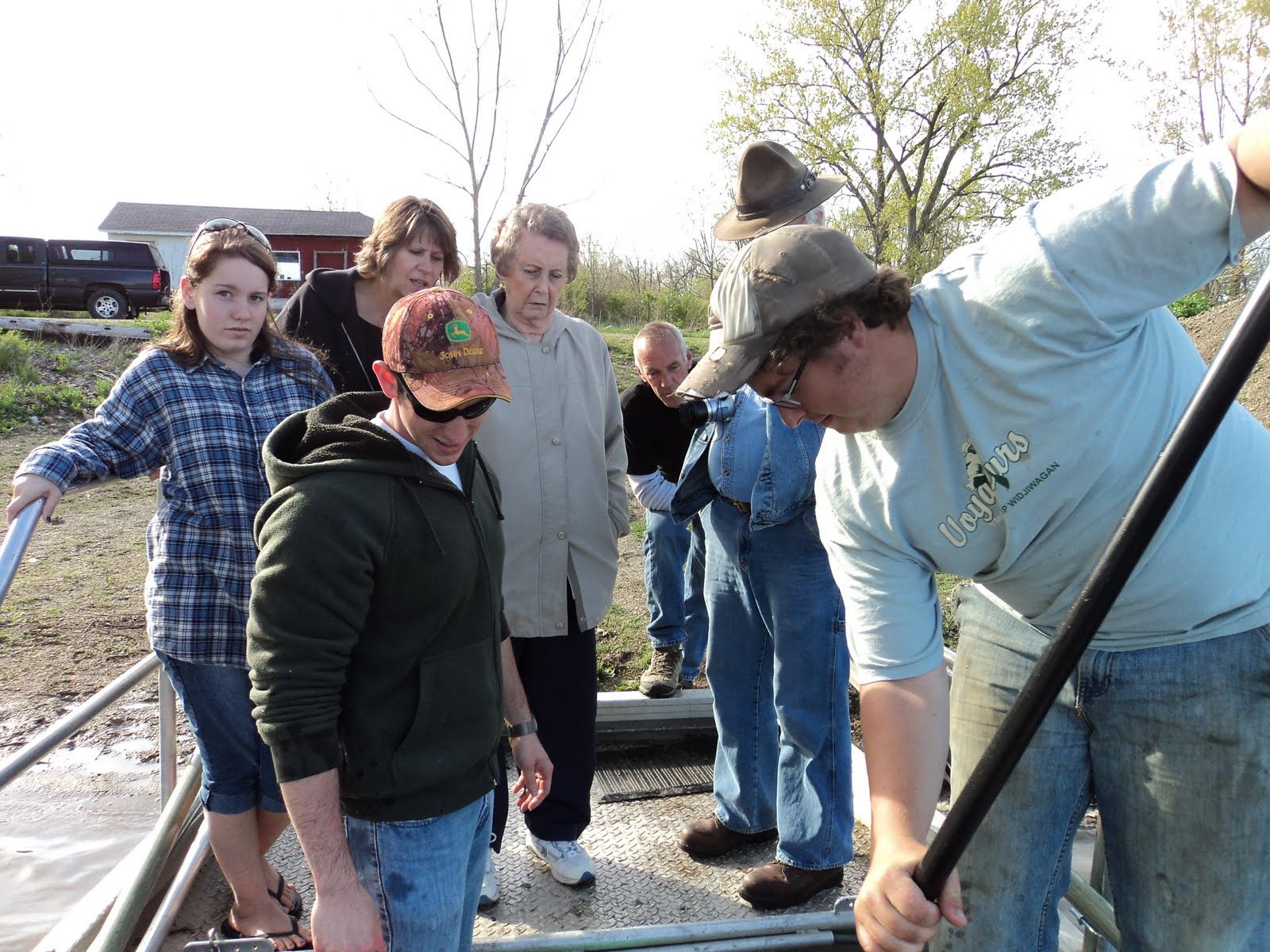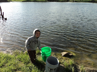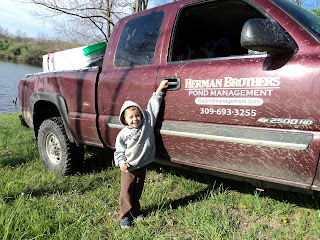 Saturday morning I picked up Noah at 6 am from Norris. He was camping out at the lake with his grandma. We loaded up a whole bunch of jumbo yellow perch and took them up to Victoria, Il to a fishing club. Then we dropped off a couple hundred lbs of fish food to another fishing club in the area and also dropped off a fish feeder to a different guy in that area. Here are some pics of Noah helping me today.