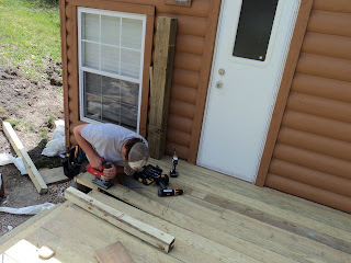 When we finally made it up to the chain we set the trailer level, hooked up the utilities, and then went out to eat with Joe at a local bar and devoured 'extreme' burgers at 10 pm. We just slept in the trailer and started working on building the deck and screen room at 5 am. We worked till about 4 pm and headed home cause we had to deliver fish wednesday morning.