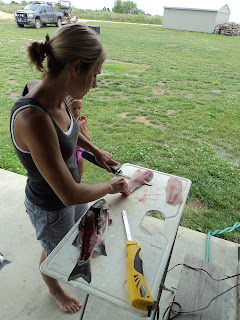 Here are a bunch of pics from the weekend. For all of Brooks friends out there (both of you know who you are), check out these pics of her cleaning some fish for dinner!! We seasoned the fish and grilled them in tinfoil with broccoli, cauliflower, carrots, and butter.