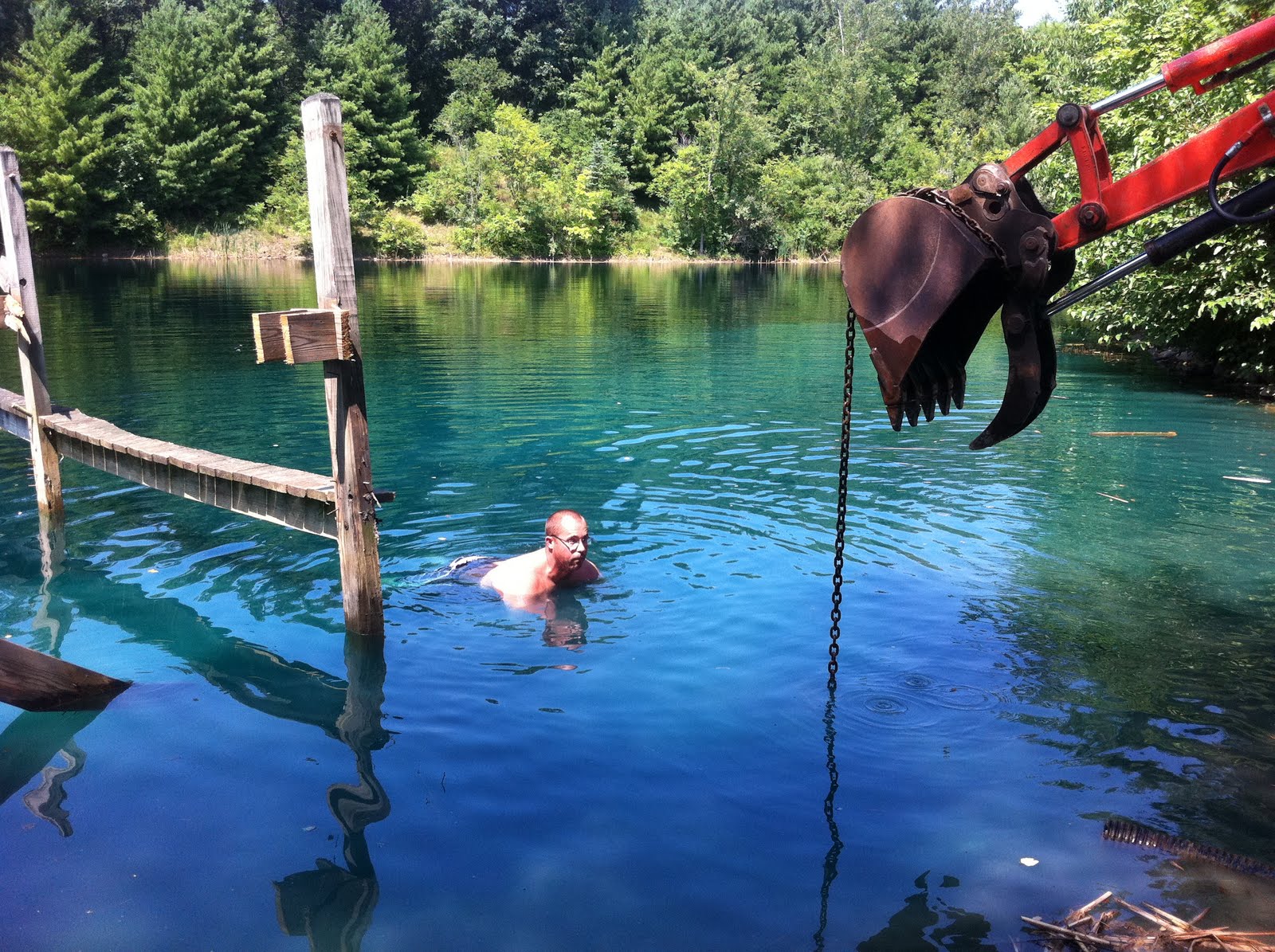 Its a million degrees outside, July has been extremely unusually HOT. I got home early from work this evening and was feeling pretty terrible from working out in the heat. Mae is having a slumber party tonight so I needed to get home early anyhow. Girls are everywhere and they pretty much never stop talking for even a moment. Anyhow we tore out an old dock today out near Congreville. Putting in a brand new dock and rope swing next week to take its place.