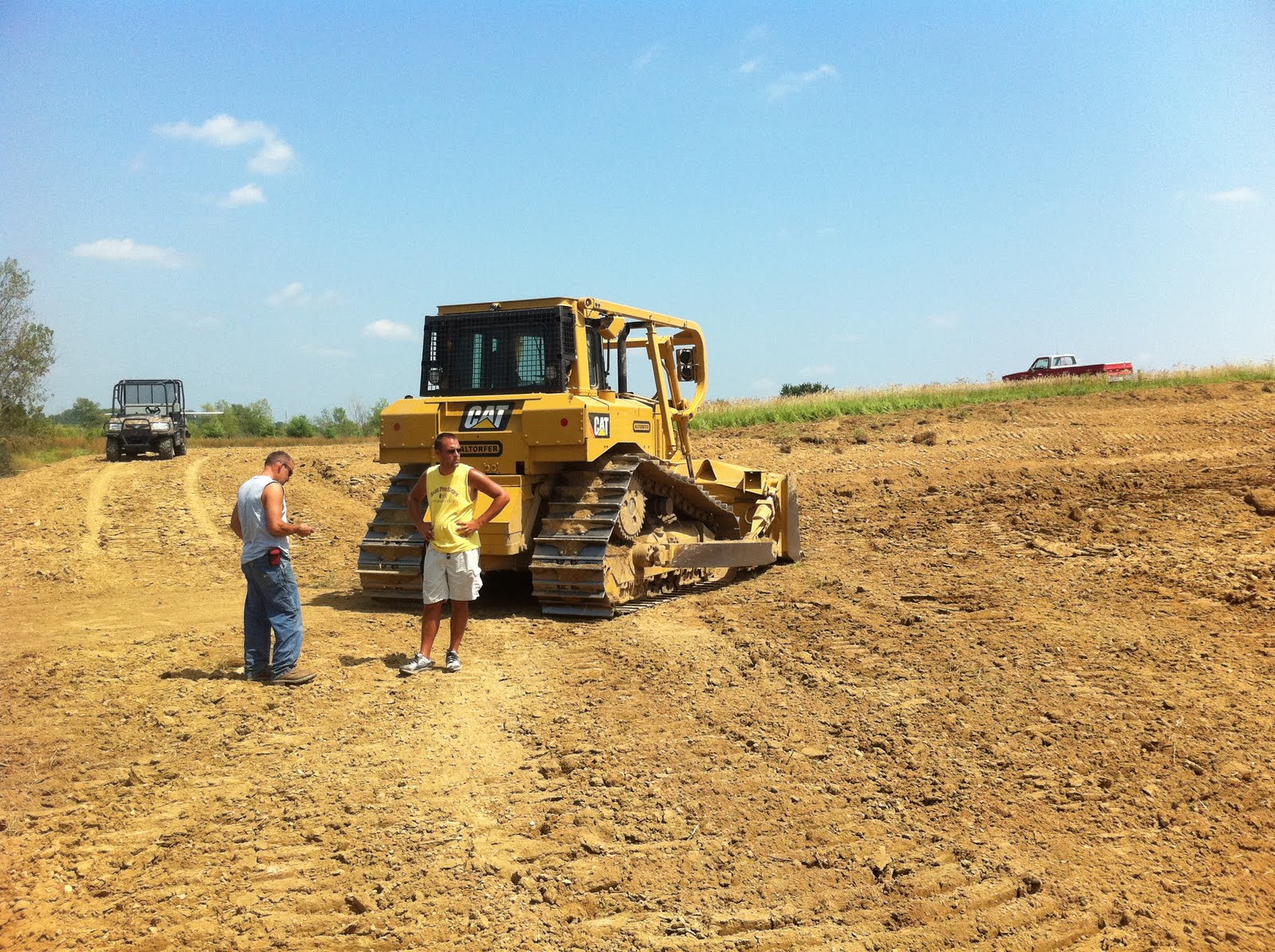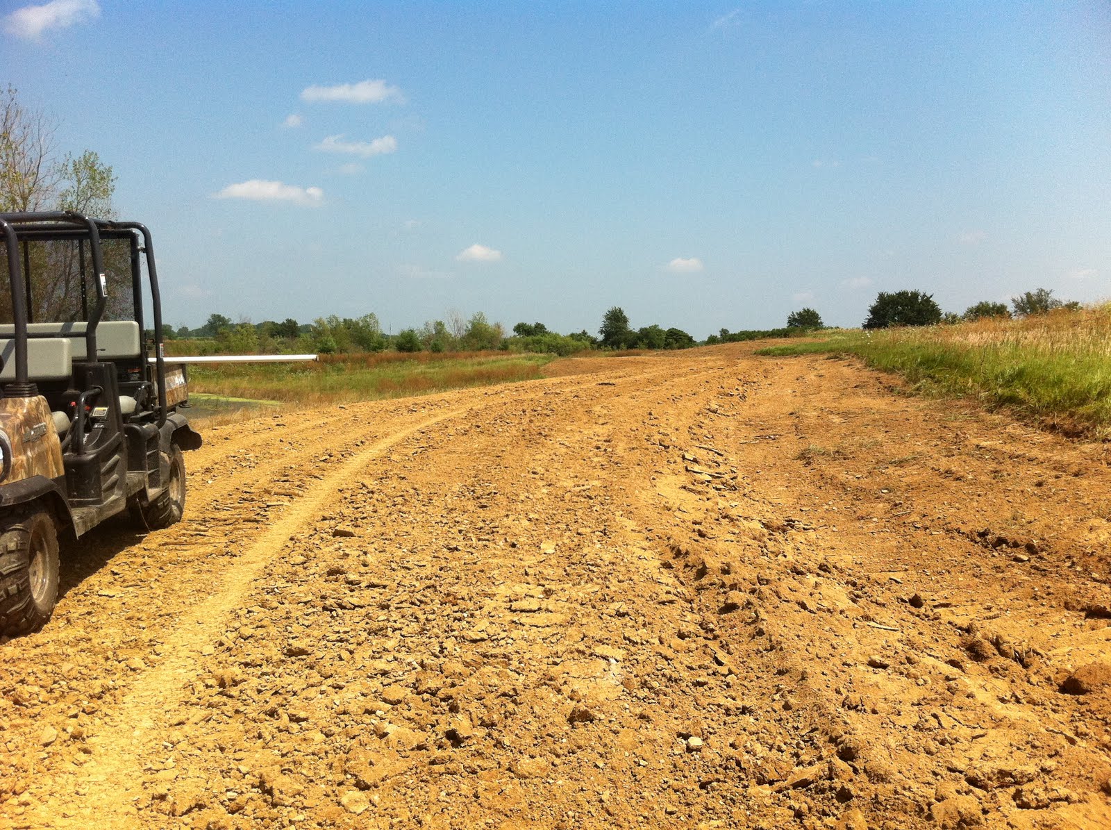 Here are some pics of a new road and boat ramp we put in for a client. Next month we will be building an awesome boat dock next to this new boat ramp with a big boat slip for a 24 foot pontoon. I actually bought an old used but sturdy pontoon boat from Hennepin Marine and am taking it to AAD custom welding tomorrow to get completely stripped down and customized. It will be the ultimate fishing machine! We are putting 10 swivel fishing seats around the perimeter and custom building a center livewell that will also have a bench seat top with all kinds of bait and tackle storage. Definitely will be posting pics of this boat once completed! Here is a pic of the new road going in: