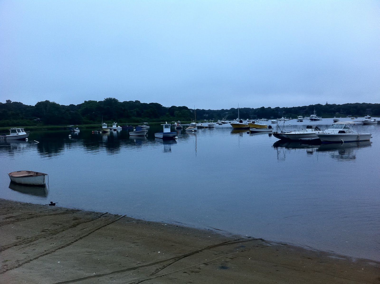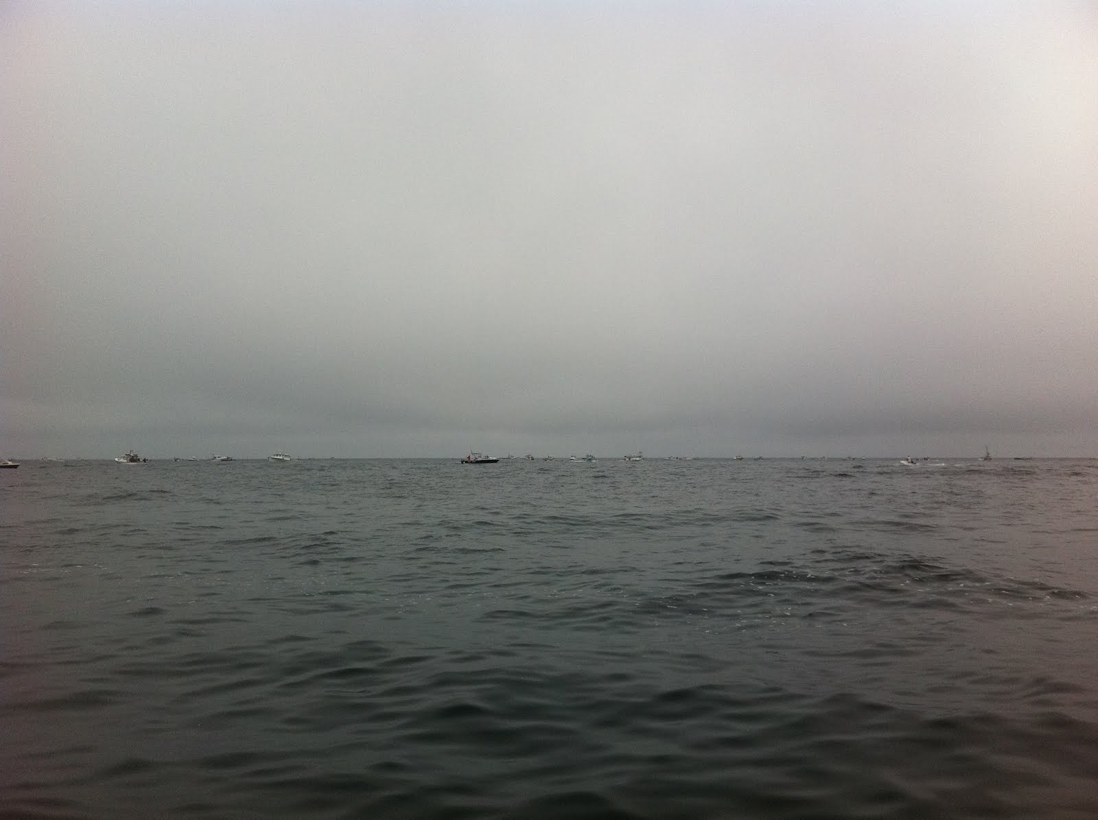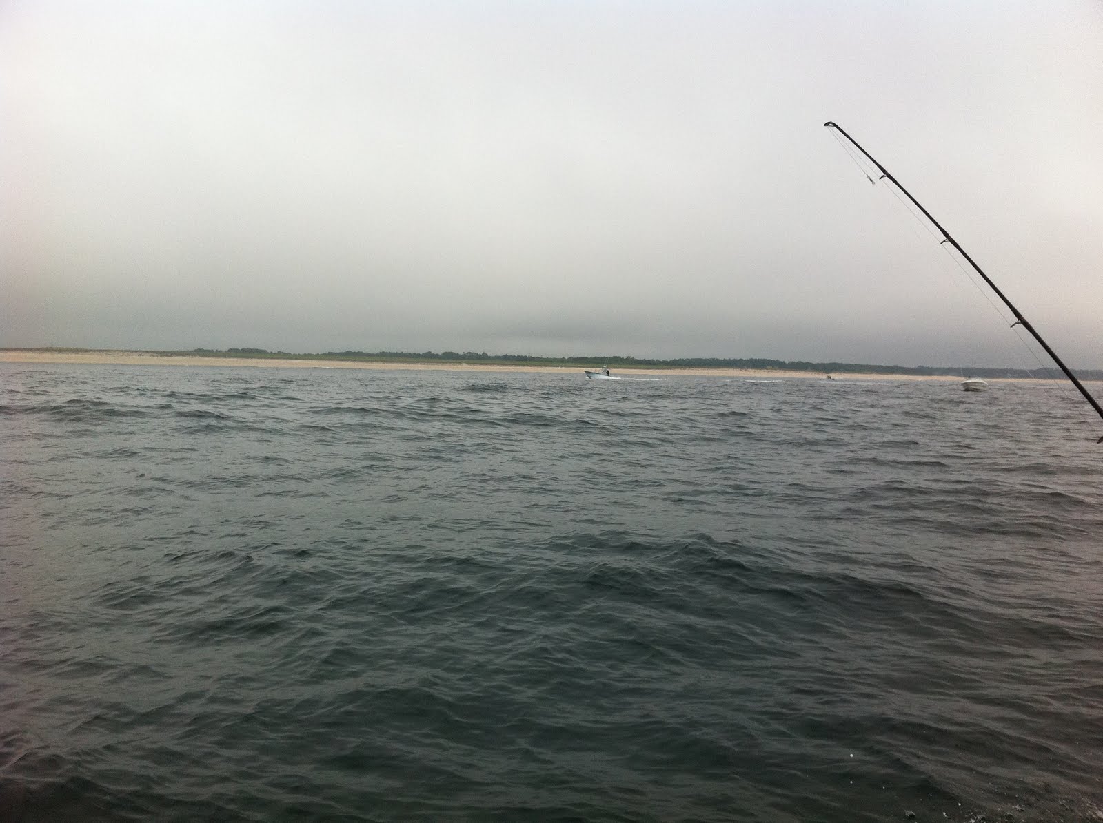Here is a shot of the view looking out. When the schools of stripers are located, every boat within miles come running in to get a piece of the action. Lots and lots of boats. Our remote beach turned into a zoo by the time we left.