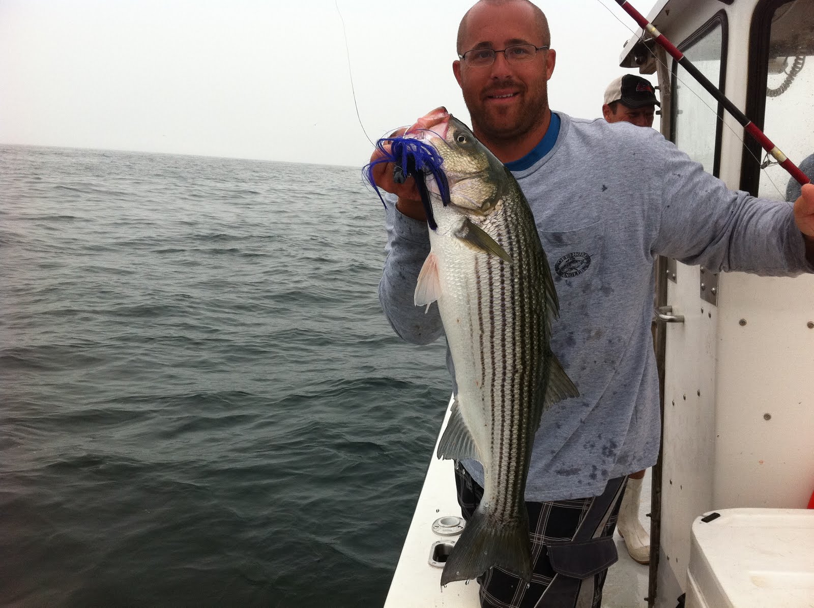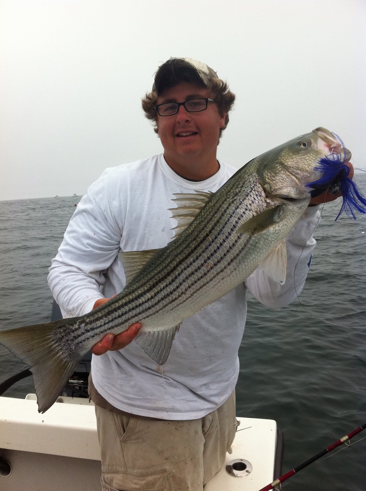 Basically you cast out a big jig/spoon bait and real it in as fast as you possibly can. The big stripers come out of nowhere and smash your bait so hard it about rips the pole out of your hands. The coolest thing is that you literally watch each fish slam the bait! My arms are completely and utterly jello right now. Just picking up each bite of food to put in my mouth is not easy with such sore arms, but I am managing.