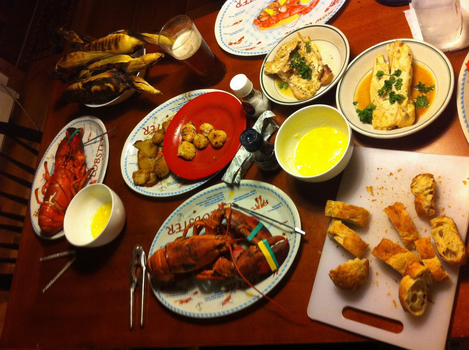Also we are having more lobsters, fresh striped bass, and fresh bluefish. We brought some fresh striped bass to the neighbor lobster lady and she dug us out 3 nice big lobsters in exchange to compliment our dinner. Seriously, this is as good as it gets. Pretty much the best food on the planet and Brett is a gourmet chef.