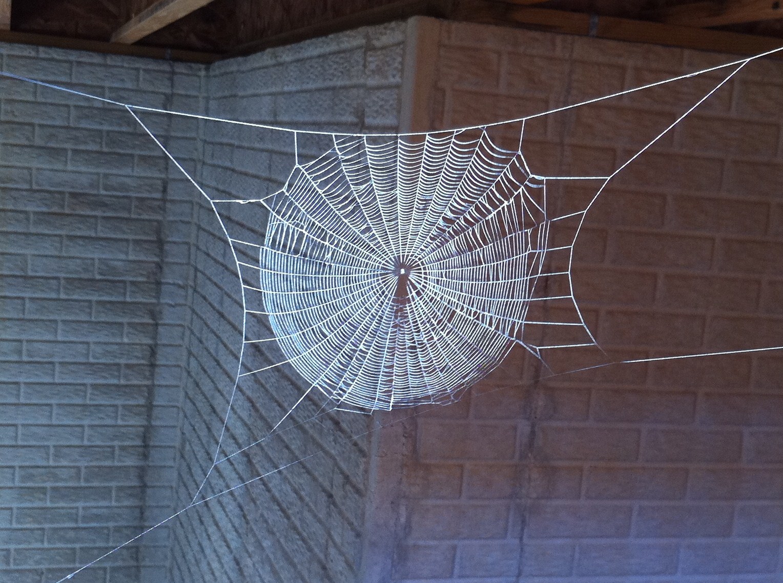 So another interesting twist to the week was I spent some evenings helping my brother set second floor walls and then trusses on his new house. That is where we snapped this spider web pic:
