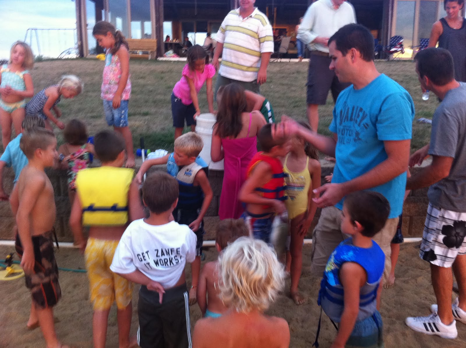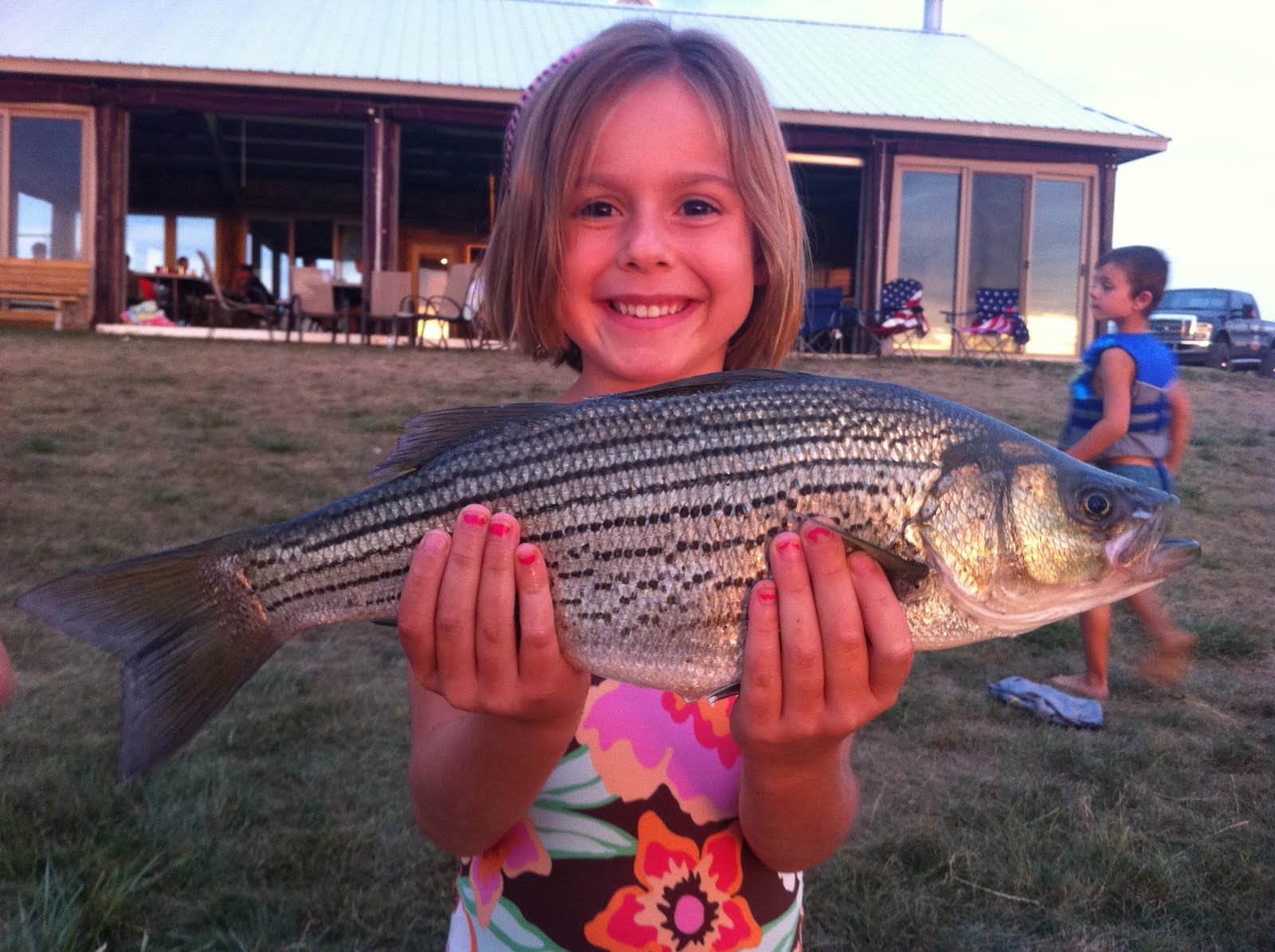 So then we had a large group of friends and family out from Church for a cookout Sunday afternoon. We made sure all 27 kids caught a hybrid striper and accomplished that in about 45 minutes!!! That was awesome for them to battle big fish and try to hold onto the rod. We kept them all and cleaned them up for each family to take a package of fresh fish home. Here are some pics: