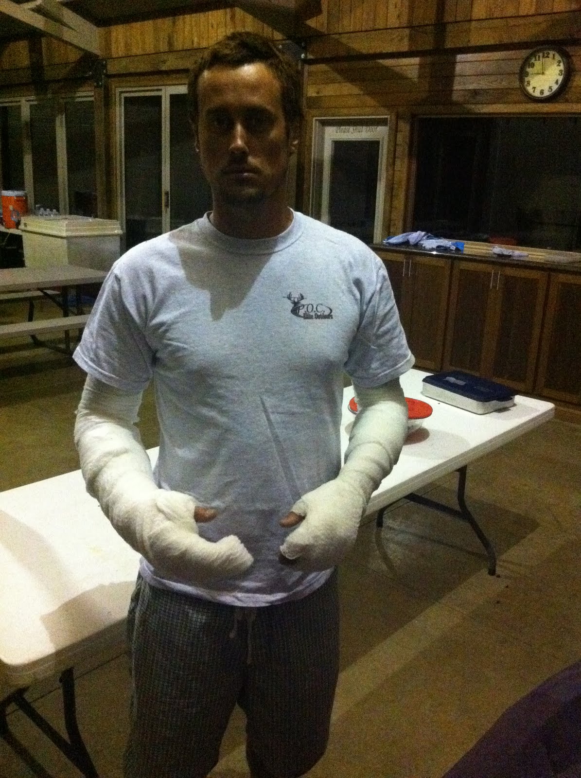 So Jared got back from the emergency room late that evening sporting some stylish new sleeves: