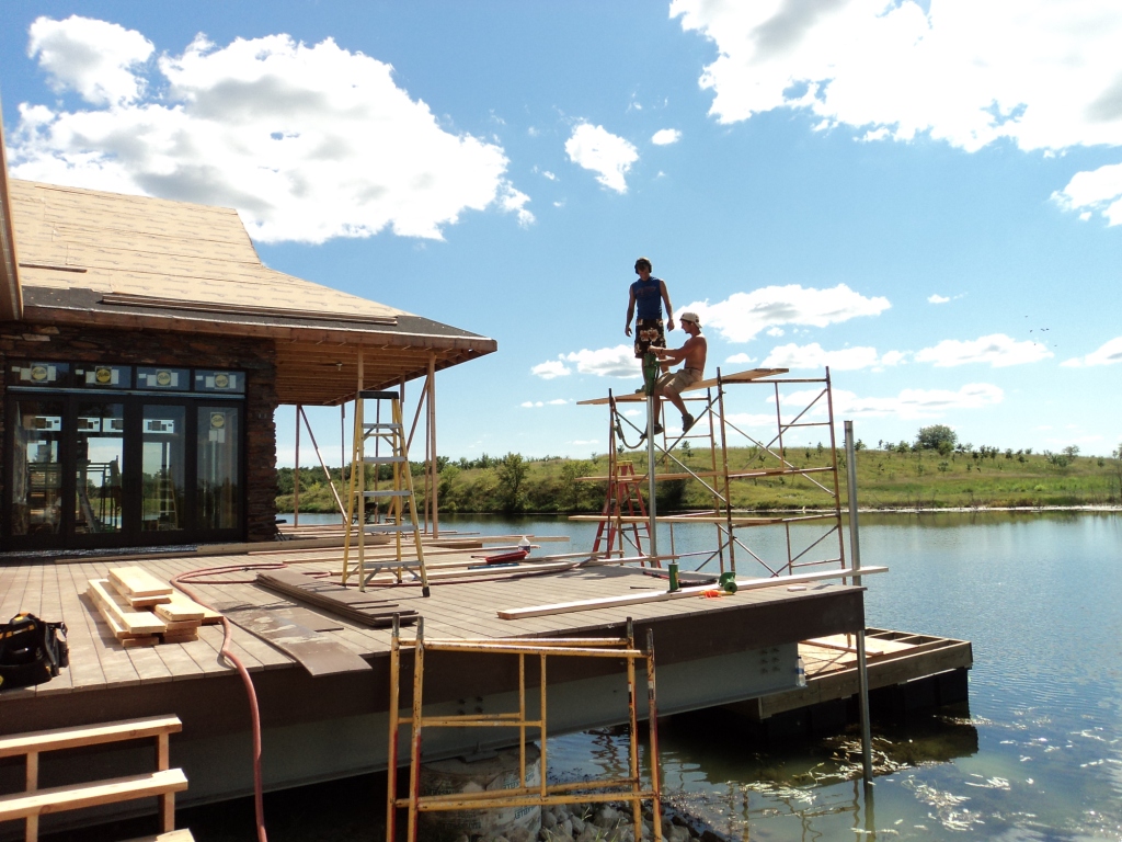 Back to the dock construction. This mega floating dock is 15x120 feet long and it is attached to a mega deck that is 20x120 feet long.