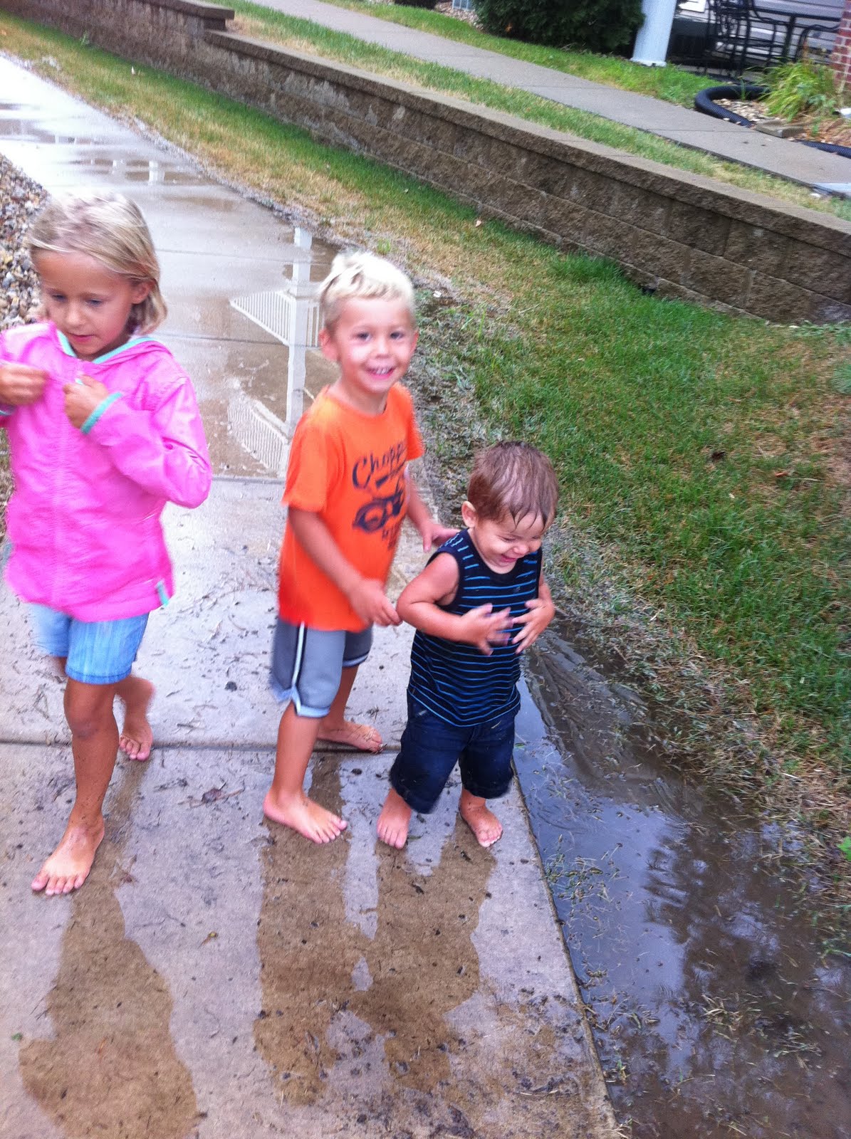 Started raining one evening and pretty much anytime it rains me and kids head straight out to play. Especially when mom isnt home!