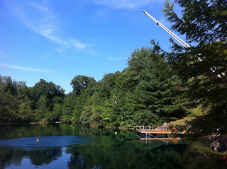 Let me just say that installing a rope swing isnt just a simple task like installing a dock. It is however very fun to figure out, and I am always up for a new challenge. After installing a handful of pretty good rope swings, I believe we have finally got er down to a science and have now perfected the art of putting in the perfect pond rope swing. (Yes Jeff, self proclaimed rope swing installer experts!)