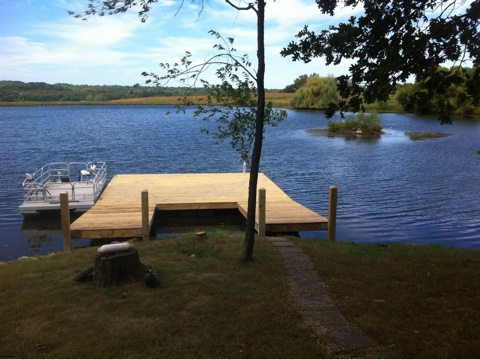 Earlier in the week Allen and I finished building this sweet dock out near Congreville. Still some landscaping to do leading up to the dock, but man is this ever a cool lake with a little island off to the right. This lake has got boone and crocket gills, great crappies, catfish, walleyes, perch, stripers, walleyes, tiger muskies, and rainbow trout. You know, the typical midwestern pond gamefish!