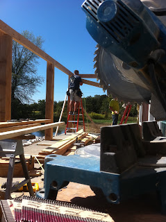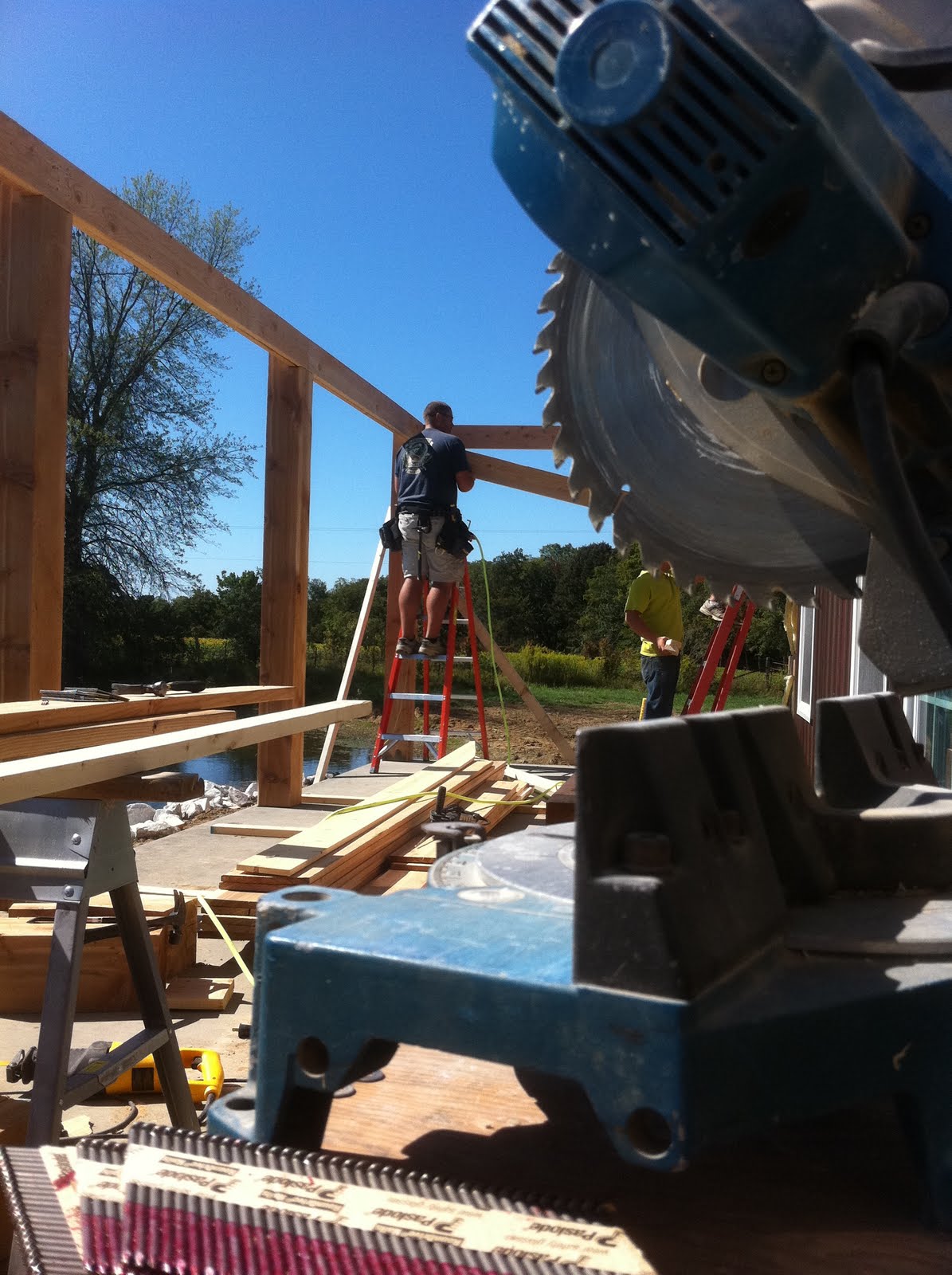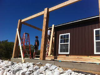 Been renovating this outpost cabin for client. The porch was poured last week by Lone Wolf Concrete and we are putting in the cedar posts and beams for the screened in porch!